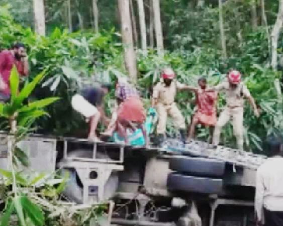 ശബരിമല തീര്ത്ഥാടകർ സഞ്ചരിച്ച ബസ് കൊക്കയിലേക്ക് മറിഞ്ഞു
